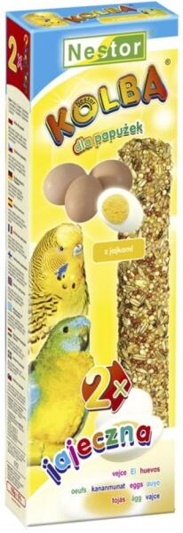 Nestor - Duplarúd hullámos- és törpepapagájoknak tojással 90 g Gabonakeverékkel bevont Nestor eledel pálcika Duplarúd hullámos- és törpepapagájoknak tojással Élmény a magok kicsipegetésében. Tartósítószert természetes összetevőket és vitaminokat nem tartalmaz. Biztonságos kényelmes akasztóval és farudacskával van ellátva. A Nestor rúd EGÉSZSÉGES mert mindig frisse