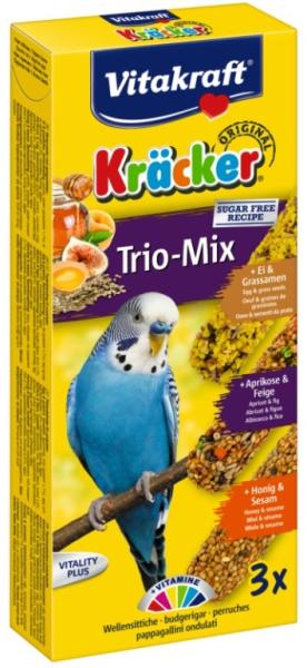 A Vitakraft tripla rúd hullámos papagájoknak kiegészítő eledel koptatófával és akasztóval három különböző ízesítésben. Az állatot arra készteti, hogy megdolgozzon a táplálékáért - mint a természetben. Felhasználási útmutató: Legjobb, ha mindig van egy rúd a ketrecben. Összetétel: Tojás és fűmag: gabona, magok (fűmag 1,1%), tojás és tojásszármazékok 1,8%,