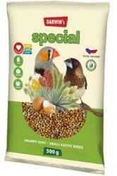 Darwin's Small Exotics Special 500 g, Kiegyensúlyozott, teljes értékű eledel kis egzotikusok számára, fokozott tápanyag-, vitamin- és ásványi anyag tartalommal, hosszú távú etetésre alkalmas. ez biztosítja madarai számára az összes szükséges tápanyagot az egészséges és hosszú, örömökkel teli élethez. Összetevők: gabonafélék, magvak, növényi eredetű fehérjekivon