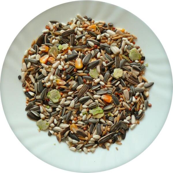 100% természetes teljes értékű takarmány nagytestű papagájok számára, alaptáp keverék Avicentra Classic Menu válogatott magvakból álló alapkeverék nagytestű papagájok napi etetésére az egészség és a jó kondíció biztosítása érdekében. összetevők: napraforgó, sáfrányos szeklice, zab, hajdina, fehér napraforgó, fehér cirok, nagy napraforgó, kukorica, vörös cir