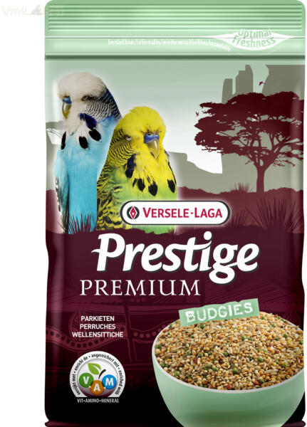 PRESTIGE Prémium eledel 800 g hullámos papagáj A Prestige Premium Budgies magkeverék és speciális szemcsék keveréke minden olyan összetevővel, ami jó kondícióban tartja a kistestű papagájféléket. Gondosan válogatott magokból és különleges, extrudált VAM-szemcsékből áll (VAM = Vitaminok, Aminosavak, Ásványi anyagok (= Minerals - M). Ezen felül a VAM-szemcsék egy speci