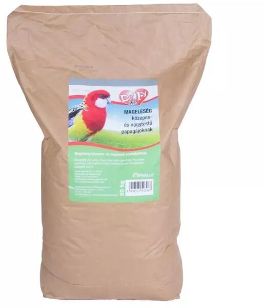 MAGELESÉG NAGYPAPAGÁJ 20kg Kiváló minőségű mageleség nagypapagájok számára. Minden olyan összetevőt tartalmaz ami jó kondícióban tartja a nagypapagájokat. Gondosan válogatott magokból áll (VAM = Vitaminok Aminosavak Ásványi anyagok (= Minerals - M). Ezen felül a VAM-szemcsék egy speciális anyagot Florastimul-t tartalmaznak ami elősegíti az optimális bélműködést és