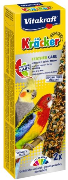 A Vitakraft Kracker dupla rúd tollváltó egy természetes anyagokból készült, vitaminokban és ásványi anyagokban gazdag, esszenciális aminosavakat tartalmazó kiegészítő eleség tollváltó nagypapagájok számára. A madarat arra készteti, hogy megdolgozzon a táplálékáért - mint a természetben. Felhasználási útmutató: Legjobb, ha mindig van egy rúd a ketrecben. Összetéte
