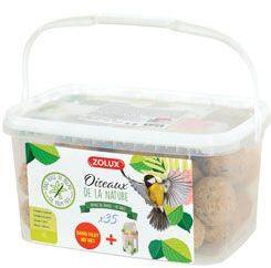 Faggyúgolyó magvakkal 90g vödör 35db Zolux, A csomag tartalma: 90g-os mártogatós golyók magokkal 35db háló nélkül A Zolux, a kültéri madarak eledeleinek specialistája új, CSR szemléleten alapuló, környezetbarát eledel- és táplálékkiegészítő termékcsaládot hozott létre. minden faggyútakarmány pálmazsír nélkül faggyúgolyók műanyag háló nélkül