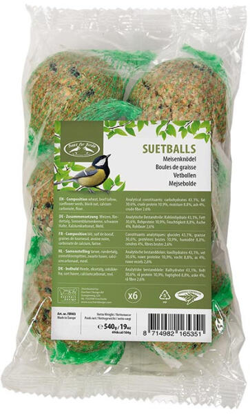 Faggyúgolyó magvakkal 6x90g, Összetevők: olajos magvak, napraforgómag, diófélék, gabonakorpa, állati zsiradék.