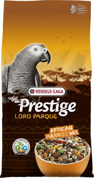VL Prestige Loro Parque afrikai papagáj keverék 1kg, Teljes értékű eledel afrikai nagypapagájok számára. Ez a különleges magkeverék változatos és kiegyensúlyozott összetételű, kifejezetten a nagytestű afrikai papagájok különleges táplálkozási igényeihez igazított. Vitaminokat, aminosavakat, ásványi anyagokat tartalmaz, valamint az optimális kondíció és emésztés é