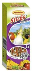 Avicentra szelet kis papagáj - gyümölcs + dió 2db, Kiegészítő eledel kis és közepes papagájok számára. A gyümölcs- és mogyorószelet kiváló csemege, de egyben olyan táplálék is, amely fontos vitaminokkal és ásványi anyagokkal látja el kedvencét az egészséges és életerős élethez. A pálcikák olyan különleges táplálékot jelentenek, ahol kedvencének erőfeszíté