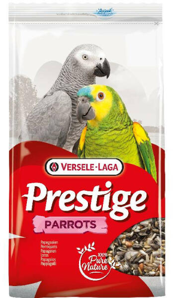 Versele-Laga Prestige Crispy Parrots - Klasszikus magkeverék jákóknak és más, hasonló méretű papagájnak Klasszikus keverék óriáspapagájok számára; sok maggal. Összetétel: Csíkos napraforgómag 25 %, Fehér napraforgómag 20 %, Plata kukorica 7 %, Búza 6 %, Tört zab 5 %, Szeklice 5 %, Pohánka 5 %, Hántolt földimogyoró 5 %, Hántolatlan földimogyoró 4 %, Hántolatlan rizs 4