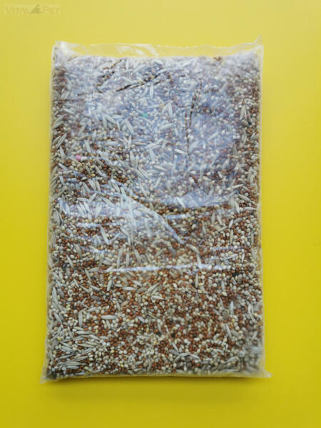 Teljes értékű kiegészítő eledel hullámos papagájoknak. természetes magkeverék, speciálisan a hullámos papagájoknak felel meg tartósítószerek, színezékek, mesterséges illatok és ízfokozók nélkül Összetétel: magok (3 % lenmagok, 2 % köles, 2 % sáfránymag), gabonaszemek, növényi eredetű melléktermékek, gyümölcs (0,75 % alma), ásványi anyagok, olajok és zsírok