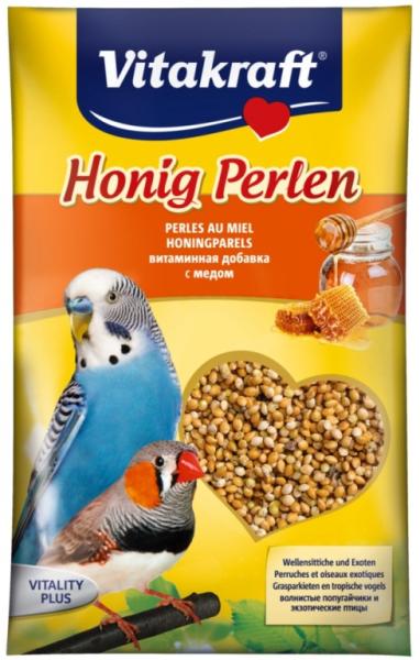 A Vitakraft mézes kismag magvacskákból álló kiegészítő takarmány hullámosoknak. Felhasználási útmutató: Naponta fél teáskanálnyi adható a főeleséghez. Összetétel: gabonafélék (96% köles), ásványi anyagok, méz 1%. Adalékanyagok/kg: A-vitamin [E672] 6.000 NE, D3-vitamin [E671] 600 NE, jód 4,97 mg, mangán 39,98 mg, cink 20,04 mg.
