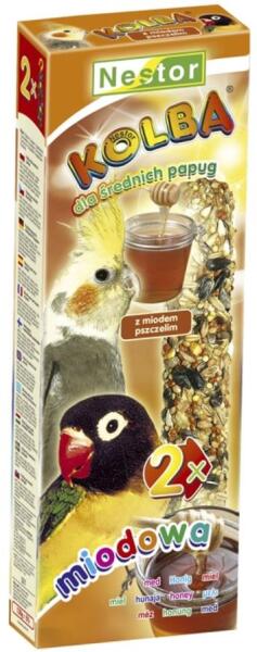 Nestor - Duplarúd nagypapagájoknak Mézzel 130 g Gabonakeverékkel bevont Nestor eledel pálcika Duplarúd nagypapagájoknak mézzel Élmény a magok kicsipegetésében. Tartósítószert természetes összetevőket és vitaminokat nem tartalmaz. Biztonságos kényelmes akasztóval és farudacskával van ellátva. A Nestor rúd EGÉSZSÉGES mert mindig frissen van csomagolva a műanyag akasztó