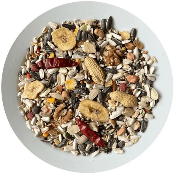 100% természetes teljes értékű takarmány nagytestű papagájok számára, prémium takarmánykeverék. Avicentra Deluxe egy válogatott magvakból álló, vitaminokkal dúsított prémium keverék nagytestű papagájok napi etetésére az egészség és a jó kondíció biztosítása érdekében. Összetevők : fehér napraforgó, sáfrányfesték, nagy napraforgó, hajdina, banán, hántolt
