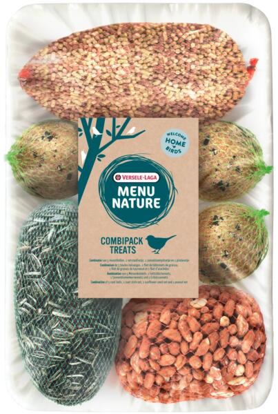 Eleségkeverék vadon élő madark részére. Tartalmaz: 5 db faggyúgolyó, 1 csomag földimogyoró, 1 csomag napraforgómag, 1 rúd mogyoró Adalékanyagmentes marhafaggyú, gabona és magok keveréke Összetevők: Faggyúgolyók: Növényi eredetű származékok, olajok és zsírok, magvak, gabonafélék, ásványi anyagok