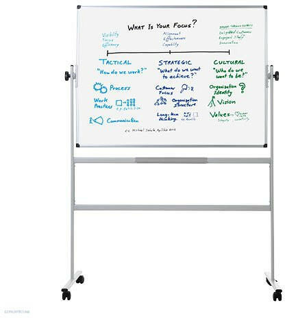 Praktikus, kétoldalú, forgatható fehértábla. Mágneses, lakkozott írófelületű, szárazon törölhető. 4 görgővel mozgatható, melyek rögzíthetőek. Áthelyezhető fém tolltartóval. Figyelem! Az írást 1 órán belül törölni kell a felületről, mert egyébként beleivódhat a tábla felületébe! .