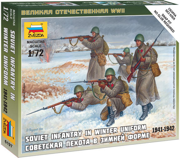 Pontrúgás Zvezda 6197 szovjet gyalogság további modelleket. Mérete a darabok 1:72; 2,4 cm. A csomag tartalmaz 25 db.