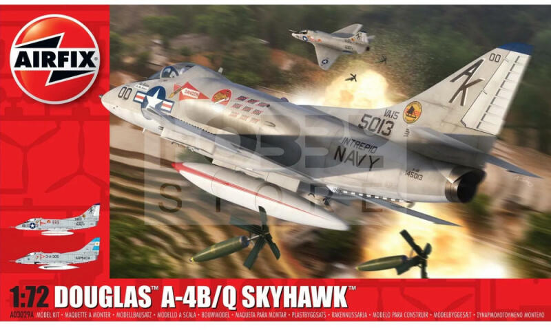 Airfix Douglas A-4B/Q Skyhawk repülőgép makett 1:72 (A03029A) Makett méretarány: 1:72 Alkatrész darabszám: 75 Makett hossúság: 17,8 cm Festést és ragasztást igénylő műanyag makett. A szükséges kiegészítőket, mint festék, ragasztó a készlet nem tartalmazza . Gyártó: Airfix Az Airfix egy tradicionális brit fröccsöntött műanyag makett gyártó cég. Az Egyesült Királys
