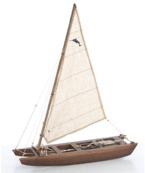 KATAMARÁN MAKETT Mérete: 37 x 48,5 x 11 cm Csomagolás: a hajómakett fektetett vitorlával, kartondobozban szállítható. A vitorla egyszerűen néhány perc alatt rögzíthető. Termékleírás: az méretarányos fa hajómakett teljes egészében kézzel készített, mely a gyakorlott és tapasztalt mesterek hozzáértő munkáját dicséri. Igényesen kidolgozott, elkészítéséhez nem hasz