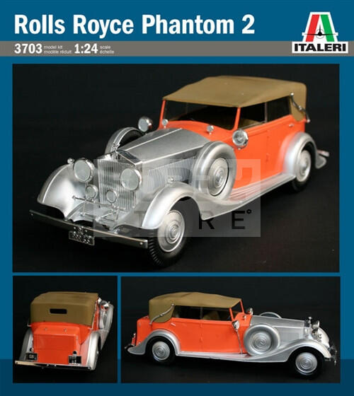 Italeri ROLLS ROYCE PHANTOM II 1:24 autó makett 3703IT Makett méretarány: 1:24 Az Italeri makett gyártó cég több mint 60 éve kápráztatja el a makettezni vágyókat műanyag termékeikkel. Történelmi maketteik megalkotását pontos kutatási munkák előzik meg, így válhattak ennyire népszerűvé. Ugyanakkor széles termékpaletta jellemzi őket: a modern gépjárművek szerelmeseit