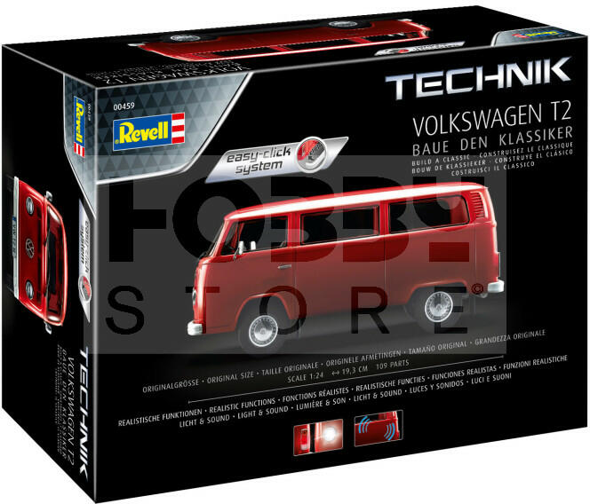 Revell Easy Click Volkswagen T2 1:24 autó makett 00459R Makett méretarány: 1:24 Alkatrész darabszám: 109 Makett hossúság: 19,3 cm Festést igénylő műanyag makett. A szükséges kiegészítőket, mint festék, ragasztó a készlet nem tartalmazza . Gyártó: Revell A Revell tradicionális nagy múltú makett gyártó. Már több mint 60 éve kápráztatja el a rajongóit termékeivel. Sz