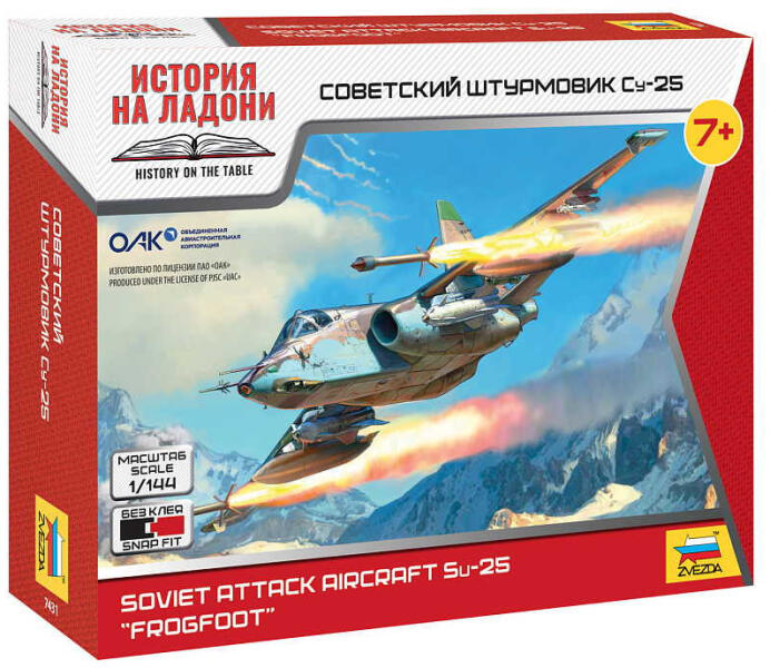 Ragasztást nem igénylő makett. A Szu-25 (NATO-kódolás: Frogfoot) egy együléses, páncélozott szubszonikus, erősen felfegyverzett és hihetetlenül túlélőképes szovjet támadó repülőgép. Arra tervezték, hogy a szárazföldi erők támogatására szolgáljon a harctéren nappal és éjszaka, egyszerű és nehéz időjárási körülmények között, a célpont vizuális láthatós