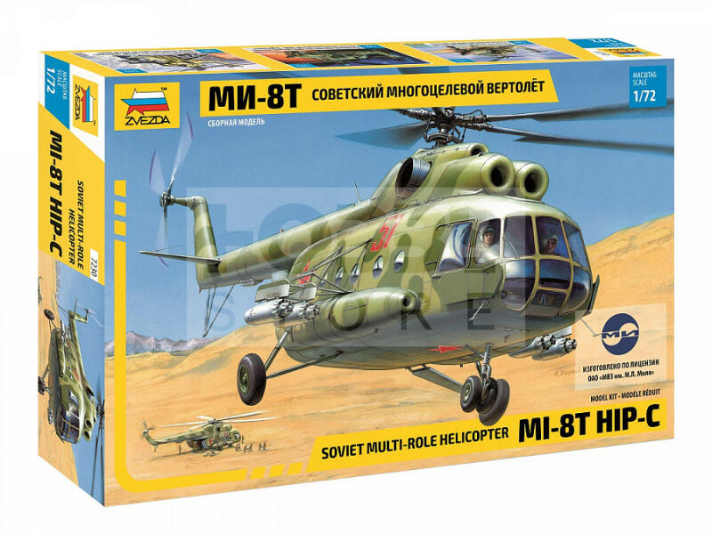 Zvezda MIL Mi-8T 'Hip-B' makett 1:72 (7230Z) Makett méretarány: 1:72 Alkatrész darabszám: 145 Makett hosszúsága: 25,5 cm A Zvezda a kiváló műanyag modelljei kapcsán vált világszerte ismerté. Makettei a legnépszerűbb méretarányokban érhető el. Elsősorban 2. világháborús gépezetek és kiegészítőik kapcsán érdemes megemlíteni a nevét, de a történelmi makettekből is s