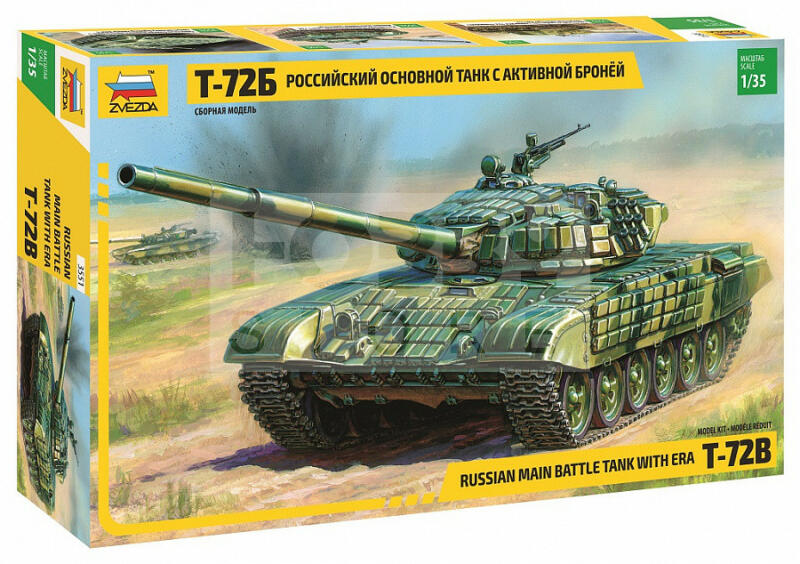 Zvezda T-72B with ERA Russian Main Battle Tank makett 1:35 (3551Z) Makett méretarány: 1:35 Alkatrész darabszám: 304 Makett hosszúsága: 29 cm A Zvezda a kiváló műanyag modelljei kapcsán vált világszerte ismerté. Makettei a legnépszerűbb méretarányokban érhető el. Elsősorban 2. világháborús gépezetek és kiegészítőik kapcsán érdemes megemlíteni a nevét, de a történel