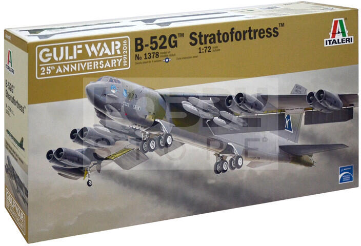 Italeri B-52G STRATOFORTRESS 1:72 repülőgép makett 1378IT Makett méretarány: 1:72 Az Italeri makett gyártó cég több mint 60 éve kápráztatja el a makettezni vágyókat műanyag termékeikkel. Történelmi maketteik megalkotását pontos kutatási munkák előzik meg, így válhattak ennyire népszerűvé. Ugyanakkor széles termékpaletta jellemzi őket: a modern gépjárművek szerelme