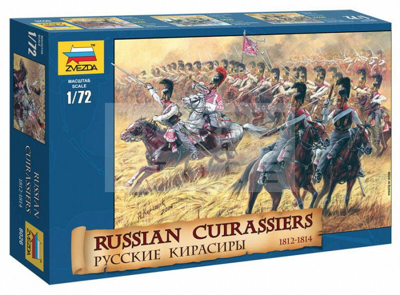Zvezda Russian Cuirassiers /1812-1815/ makett 1:72 (8026Z) Makett méretarány: 1:72 Alkatrész darabszám: 16 Makett hosszúsága: 3,5 cm A Zvezda a kiváló műanyag modelljei kapcsán vált világszerte ismerté. Makettei a legnépszerűbb méretarányokban érhető el. Elsősorban 2. világháborús gépezetek és kiegészítőik kapcsán érdemes megemlíteni a nevét, de a történelmi maket