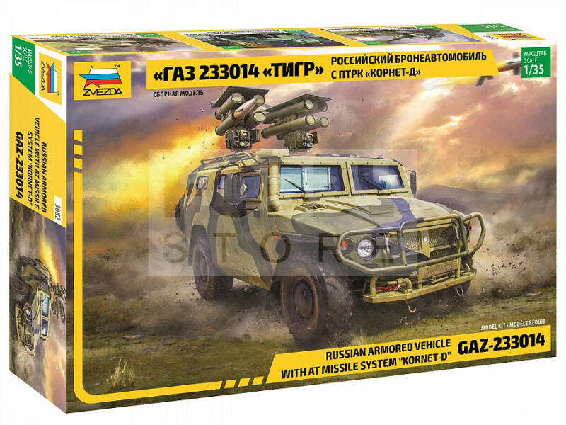 Zvezda GAZ Kornet makett 1:35 (3682Z) Makett méretarány: 1:35 Alkatrész darabszám: 236 Makett hosszúsága: 16,2 cm A Zvezda a kiváló műanyag modelljei kapcsán vált világszerte ismerté. Makettei a legnépszerűbb méretarányokban érhető el. Elsősorban 2. világháborús gépezetek és kiegészítőik kapcsán érdemes megemlíteni a nevét, de a történelmi makettekből is széles