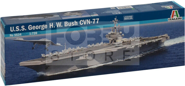 Italeri U. S. S. GEORGE H. W. BUSH CVN-77 1:720 tengeralattjáró makett 5534IT Makett méretarány: 1:720 Az Italeri makett gyártó cég több mint 60 éve kápráztatja el a makettezni vágyókat műanyag termékeikkel. Történelmi maketteik megalkotását pontos kutatási munkák előzik meg, így válhattak ennyire népszerűvé. Ugyanakkor széles termékpaletta jellemzi őket: a modern gé