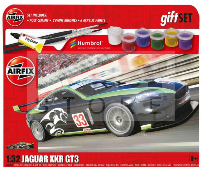 Airfix - Starter Set - Jaguar XKR GT3 autó makett 1:32 (A55306A) Makett méretarány: 1:32 Alkatrész darabszám: 49 Makett hossúság: 15,2 cm Festést és ragasztást igénylő műanyag makett. A szükséges kiegészítőket, mint festék, ragasztó a készlet tartalmazza . Gyártó: Airfix Az Airfix egy tradicionális brit fröccsöntött műanyag makett gyártó cég. Az Egyesült Királyság