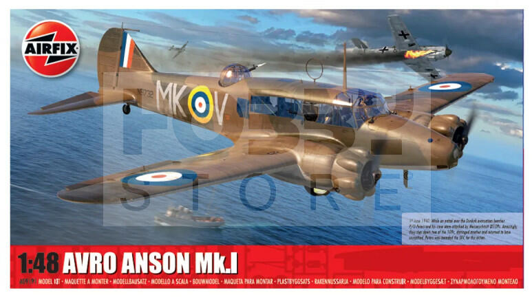 Airfix Avro Anson Mk. I repülőgép makett 1:48 (A09191) Makett méretarány: 1:48 Alkatrész darabszám: 175 Makett hossúság: 26,9 cm Festést és ragasztást igénylő műanyag makett. A szükséges kiegészítőket, mint festék, ragasztó a készlet nem tartalmazza . Gyártó: Airfix Az Airfix egy tradicionális brit fröccsöntött műanyag makett gyártó cég. Az Egyesült Királyságan