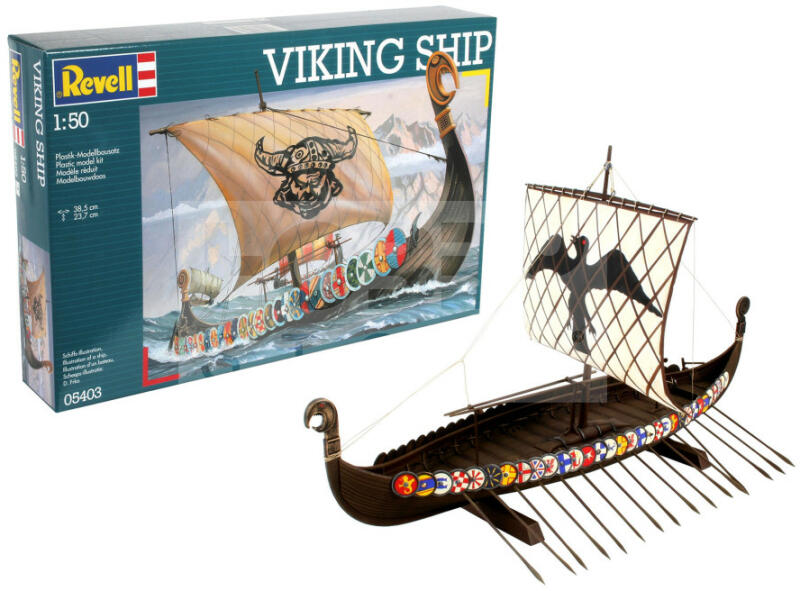Revell Model Set Viking Ship 1:50 hajó makett 65403R Makett méretarány: 1:50 Alkatrész darabszám: 131 Makett hossúság: 38,5 cm Festést és ragasztást igénylő műanyag makett. A készlet az alap színeket (Revell Aqua Color), ragasztót illetve ecsetet tartalmaz . Gyártó: Revell A Revell tradicionális nagy múltú makett gyártó. Már több mint 60 éve kápráztatja el a rajongóit