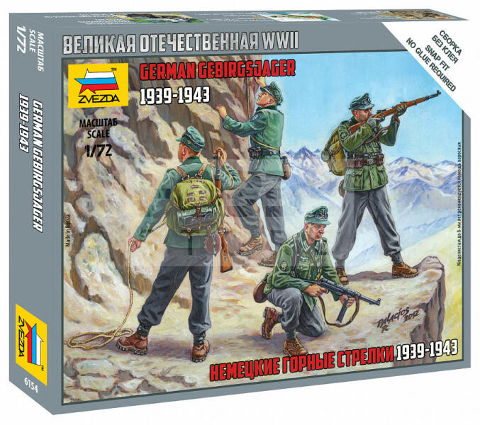 Zvezda German Gebirgsjager makett 1:72 (6154Z) Makett méretarány: 1:72 Alkatrész darabszám: 20 Makett hosszúsága: 2,4 cm A Zvezda a kiváló műanyag modelljei kapcsán vált világszerte ismerté. Makettei a legnépszerűbb méretarányokban érhető el. Elsősorban 2. világháborús gépezetek és kiegészítőik kapcsán érdemes megemlíteni a nevét, de a történelmi makettekből is s