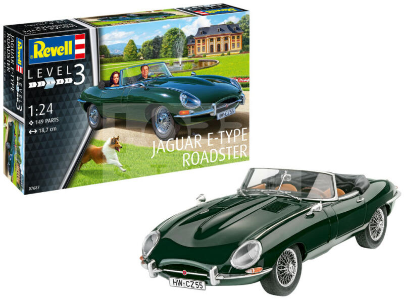 Revell Jaguar E-Type Roadster 1:24 autó makett 07687R Makett méretarány: 1:24 Alkatrész darabszám: 149 Makett hossúság: 18,7 cm Festést és ragasztást igénylő műanyag makett. A szükséges kiegészítőket, mint festék, ragasztó a készlet nem tartalmazza . Gyártó: Revell A Revell tradicionális nagy múltú makett gyártó. Már több mint 60 éve kápráztatja el a rajongóit ter
