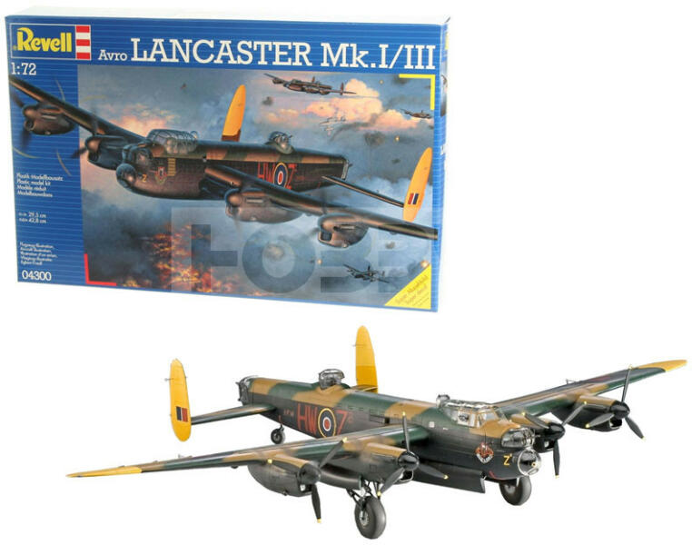 Revell Avro Lancaster Mk. I/III 1:72 repülő makett 04300R Makett méretarány: 1:72 Alkatrész darabszám: 257 Makett hossúság: 29,5 cm Festést és ragasztást igénylő műanyag makett. A szükséges kiegészítőket, mint festék, ragasztó a készlet nem tartalmazza . Gyártó: Revell A Revell tradicionális nagy múltú makett gyártó. Már több mint 60 éve kápráztatja el a rajongói