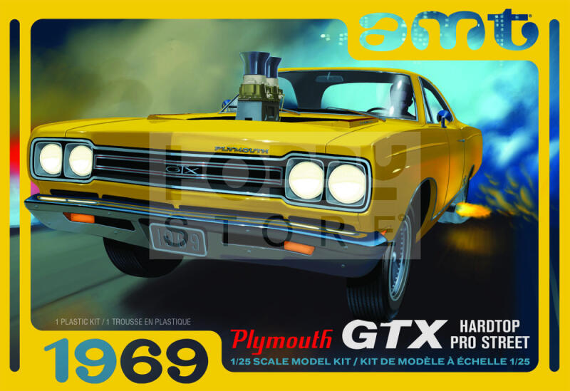 AMT 1969 Plymouth GTX Hardtop Pro Street 1:25 autó makett AMT1180 Szeretenél egy igazi amerikai izomautót építeni? Nos, az AMT makettek széles palettáján szinte csak ilyeneket fogsz találni. Az AMT amerikai makett gyártó mely kifejezetten autó makettek gyártásával foglalkozik az 30-60 évektől indulva napjainkig. Az autók mellett természetesen megjelennek a szortimentben a Star T