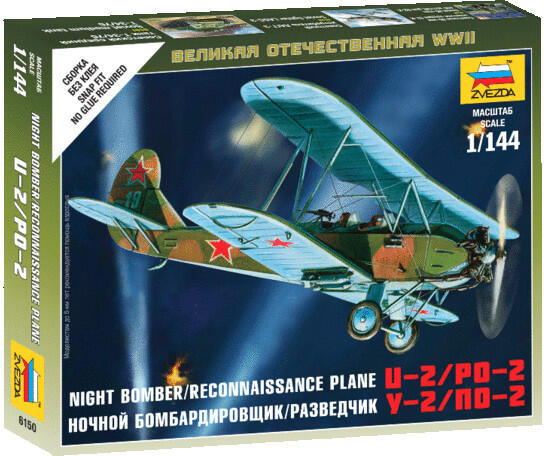 Festést, ragasztást igénylő makett. Szovjet PO-2 repülőgép Méretarány: 1:144 Gyártó: Zvezda