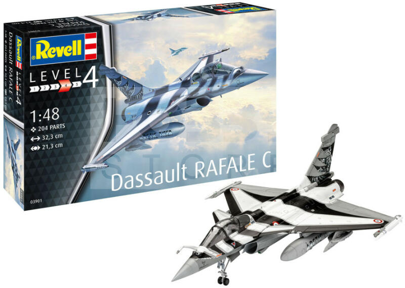 Revell Dassault Rafale C 1:48 repülő makett 03901R Makett méretarány: 1:48 Alkatrész darabszám: 204 Makett hossúság: 32,3 cm Festést és ragasztást igénylő műanyag makett. A szükséges kiegészítőket, mint festék, ragasztó a készlet nem tartalmazza . Gyártó: Revell A Revell tradicionális nagy múltú makett gyártó. Már több mint 60 éve kápráztatja el a rajongóit term