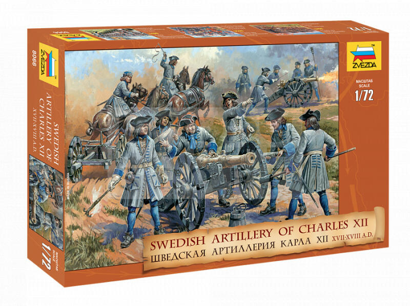 Zvezda Swedish Artillery Charles XII makett 1:72 (8066Z) Makett méretarány: 1:72 Alkatrész darabszám: 40 Makett hosszúsága: 2,4 cm A Zvezda a kiváló műanyag modelljei kapcsán vált világszerte ismerté. Makettei a legnépszerűbb méretarányokban érhető el. Elsősorban 2. világháborús gépezetek és kiegészítőik kapcsán érdemes megemlíteni a nevét, de a történelmi makette