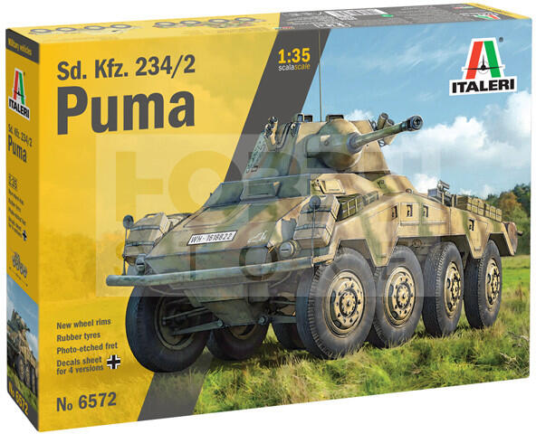 Italeri Sd. Kfz. 234/2 Puma 1:35 harcjármű makett 6572IT Makett méretarány: 1:35 Az Italeri makett gyártó cég több mint 60 éve kápráztatja el a makettezni vágyókat műanyag termékeikkel. Történelmi maketteik megalkotását pontos kutatási munkák előzik meg, így válhattak ennyire népszerűvé. Ugyanakkor széles termékpaletta jellemzi őket: a modern gépjárművek szerelmese