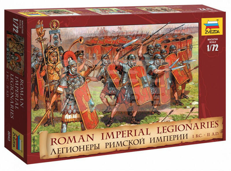 Zvezda Roman Imperial Infantry /I. BC-II. AD/ makett 1:72 (8043Z) Makett méretarány: 1:72 Alkatrész darabszám: 52 Makett hosszúsága: 2,4 cm A Zvezda a kiváló műanyag modelljei kapcsán vált világszerte ismerté. Makettei a legnépszerűbb méretarányokban érhető el. Elsősorban 2. világháborús gépezetek és kiegészítőik kapcsán érdemes megemlíteni a nevét, de a történelm