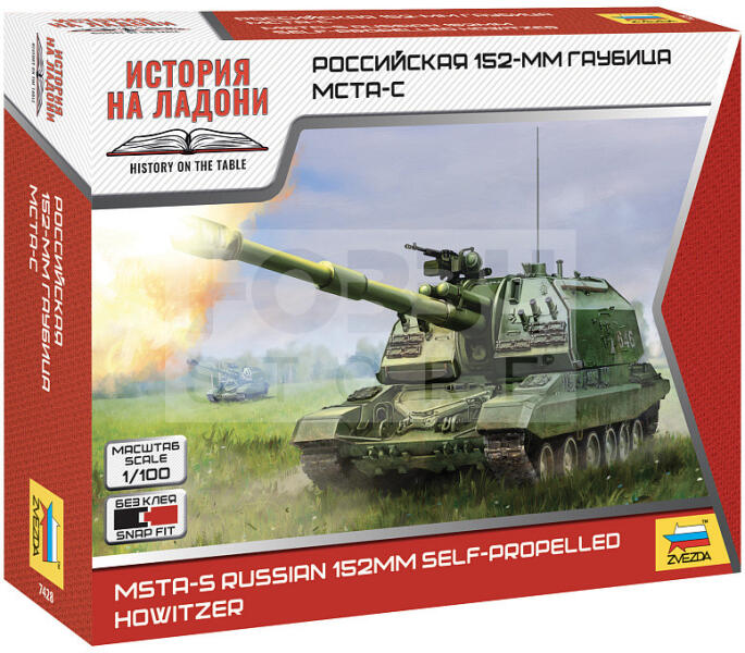 Zvezda MSTA-S Russian 152mm self-propelled howitzer 1:100 makett (74285Z) Makett méretarány: 1:100 Alkatrész darabszám: 25 Makett hosszúsága: 13,2 cm A Zvezda a kiváló műanyag modelljei kapcsán vált világszerte ismerté. Makettei a legnépszerűbb méretarányokban érhető el. Elsősorban 2. világháborús gépezetek és kiegészítőik kapcsán érdemes megemlíteni a nevét, de a t