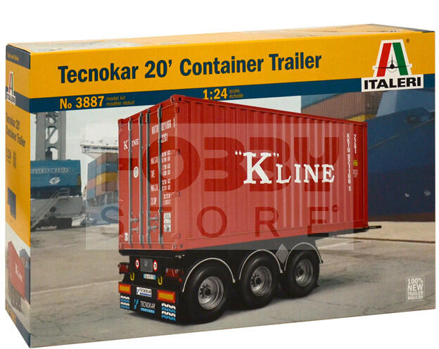 Italeri TECNOKAR 20' CONTAINER TRAILER 1:24 autó makett 3887IT Makett méretarány: 1:24 Az Italeri makett gyártó cég több mint 60 éve kápráztatja el a makettezni vágyókat műanyag termékeikkel. Történelmi maketteik megalkotását pontos kutatási munkák előzik meg, így válhattak ennyire népszerűvé. Ugyanakkor széles termékpaletta jellemzi őket: a modern gépjárművek szere