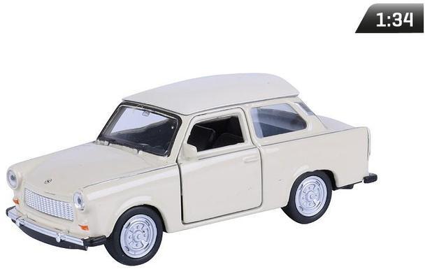 1:34 méretarányban készült TRABANT 601 modell. Gumiból készült gumiabroncsokkal és nyíló ajtóval rendelkezik. Fém karosszéria eredeti fényezéssel volt festve.