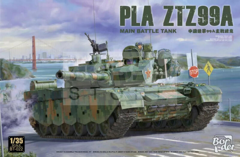 Border Model PLA ZTZ99A Main Battle Tank makett 1:35 (BT022) Makett méretarány: 1:35 A Border Model neve részletes műanyag modelleik kapcsán vált híressé. Jó minősége és részletgazdag kidolozottsága miatt népszerű a makettezők körében. Főleg katonai harcjárművek és repülők találhatóak meg kínálatukban. Könnyű összeszerelhetősége által jó választás lehet kezdő