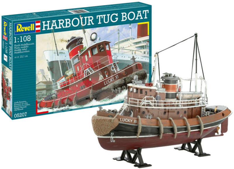 Revell - Harbour Tug Boat 1:108 hajó makett 05207R Makett méretarány: 1:108 Alkatrész darabszám: 89 Makett hossúság: 23,1 cm Festést és ragasztást igénylő műanyag makett. A szükséges kiegészítőket, mint festék, ragasztó a készlet nem tartalmazza . Gyártó: Revell A Revell tradicionális nagy múltú makett gyártó. Már több mint 60 éve kápráztatja el a rajongóit termé