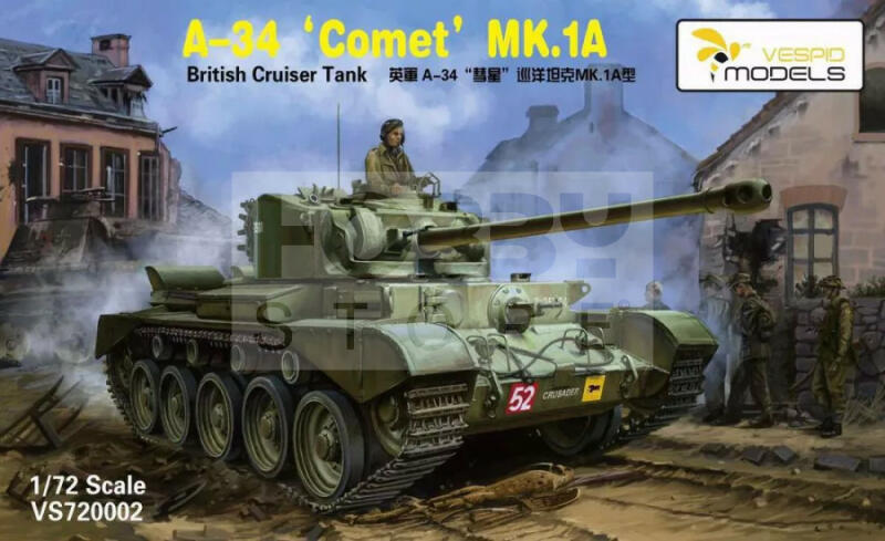 Vespid Models British Cruiser Tank A34 COMET Mk. IA makett 1:72 (VS720002) Makett méretarány: 1:72 Vespid Models makettjeit magas minőség és részletgazdag kidolgozottság jellemzi. Kínálatukban harcjárműveket találhatunk meg változatos méretarányban. Kiváló választás lehet mind kezdők mind profi modellezőknek. Festést és ragasztást igénylő makett. A modellek összeállít