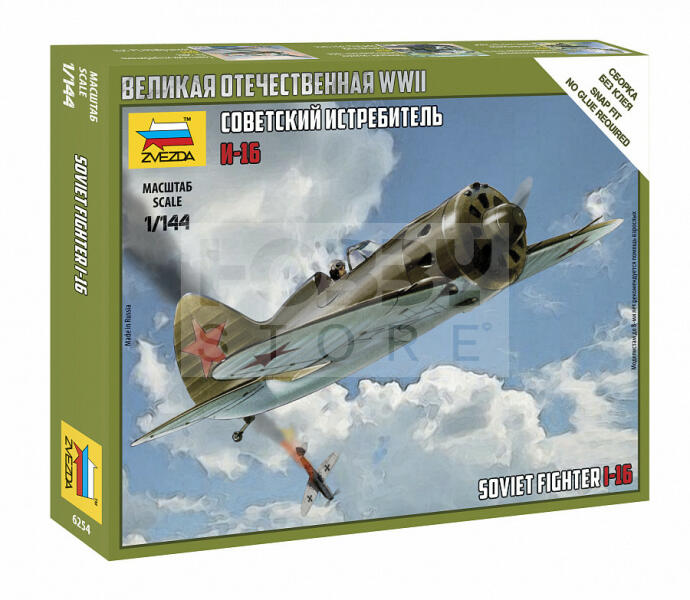 Zvezda I-16 Soviet Fighter makett 1:144 (6254Z) Makett méretarány: 1:144 Alkatrész darabszám: 13 Makett hosszúsága: 4,2 cm A Zvezda a kiváló műanyag modelljei kapcsán vált világszerte ismerté. Makettei a legnépszerűbb méretarányokban érhető el. Elsősorban 2. világháborús gépezetek és kiegészítőik kapcsán érdemes megemlíteni a nevét, de a történelmi makettekből is