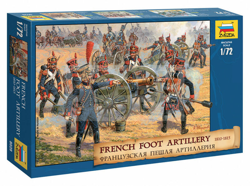 Zvezda French Foot Artillery /1812-14/ makett 1:72 (8028Z) Makett méretarány: 1:72 A Zvezda a kiváló műanyag modelljei kapcsán vált világszerte ismerté. Makettei a legnépszerűbb méretarányokban érhető el. Elsősorban 2. világháborús gépezetek és kiegészítőik kapcsán érdemes megemlíteni a nevét, de a történelmi makettekből is széles palettát állít fel: vikingek, r